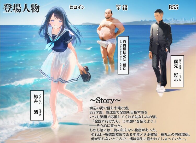 - プレイ内容:デモ・体験版あり,制服,フェラ,おっぱい,陰毛・腋毛,男性向け,成人向け,黒髪,BSS,体格差,定点,寝取り・寝取られ・NTR
