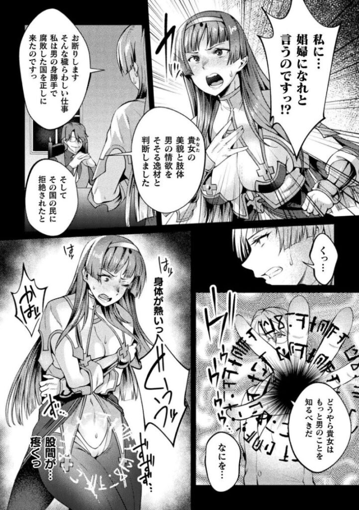 女性だけで構成された聖ベルナルド騎士団と団長のエミリアは、淫欲に塗れた奉仕国家を正そうと市中に現れる。しかし健闘虚しくキーンたちに捕らえられ、エミリアは娼婦の道に堕とされていく。さらにキーンの力によって、ふたなりペニスを生やされたエミリアは、娼婦として成長したラドミラに身体中を責められることに。味わったことのない強烈な快楽に悶えるエミリア。それでもなお、正義の矜持を捨てない女騎士団長を次なる陵●が待ち受ける……!※『くっ殺ヒロインズVol.44』に掲載されている作品です。
