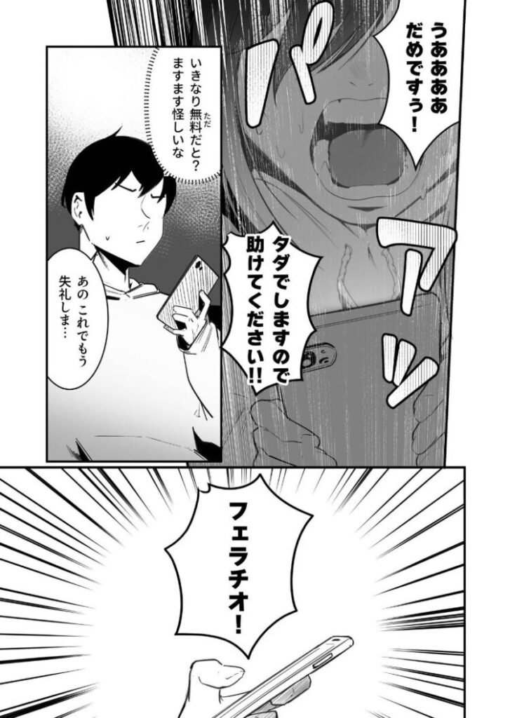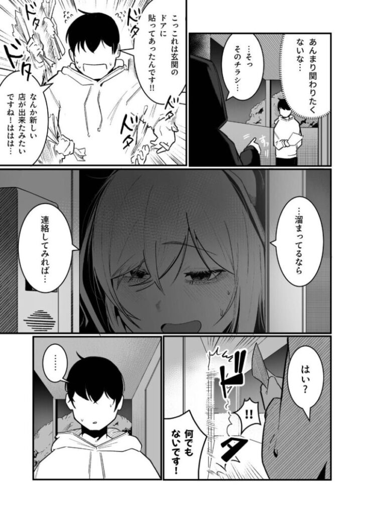 バイトから帰宅しアパートの扉に貼られた風俗?のチラシを見ていると、お隣の引きこもり黒フードの陰キャ女に話しかけられる。その女に勧められチラシの連絡先に電話をすることになったがなにやら怪しい雰囲気。電話を切ろうとすると…「フ〇ラチオ!生〇メ!ア〇ル!緊〇!キス!乳首!」「何でもしますから一度だけでも利用してくださいぃぃ!!」それでも切ろうとすると…「乳牛コスプレ!」……俺はOKしてしまった。